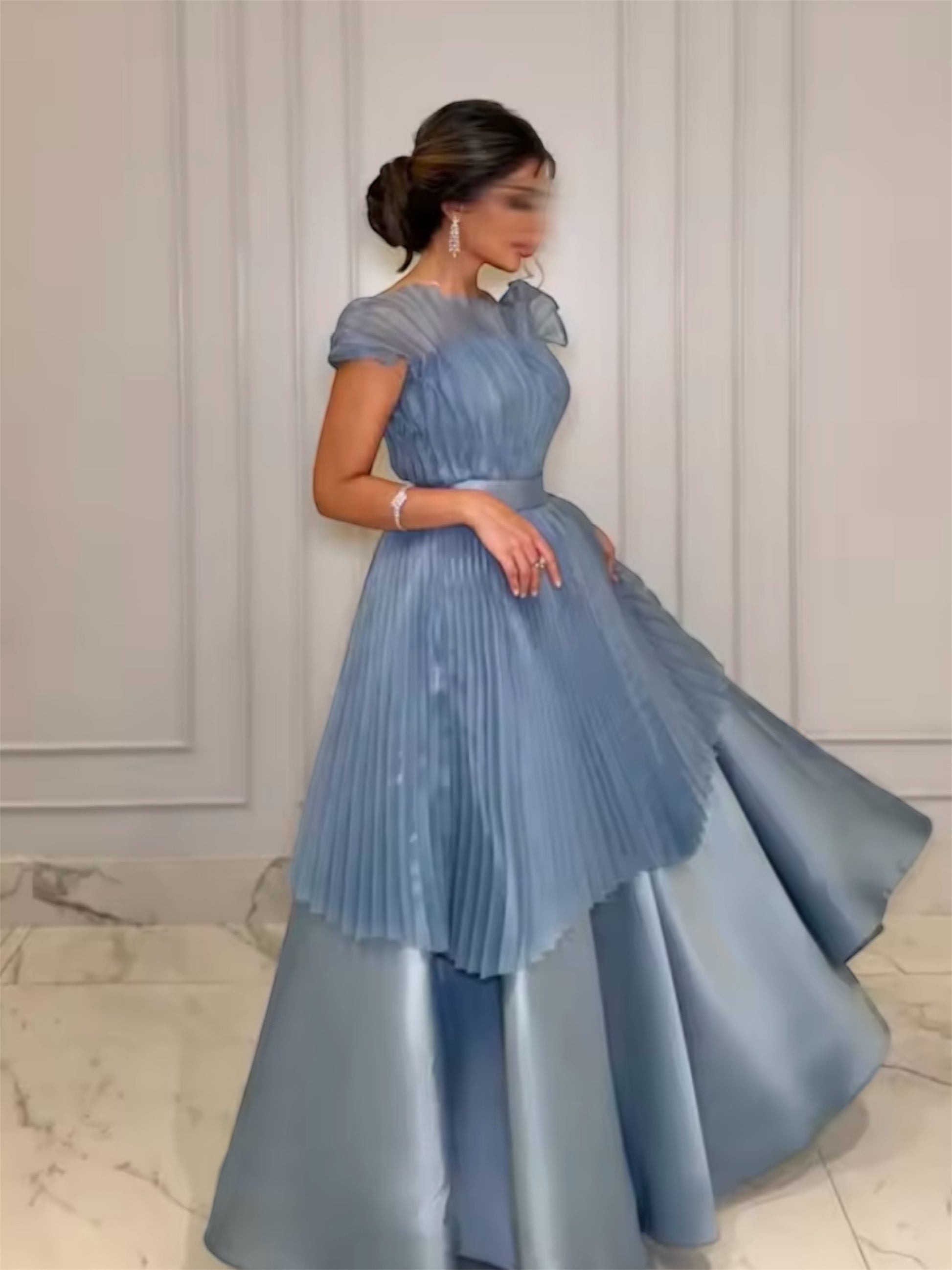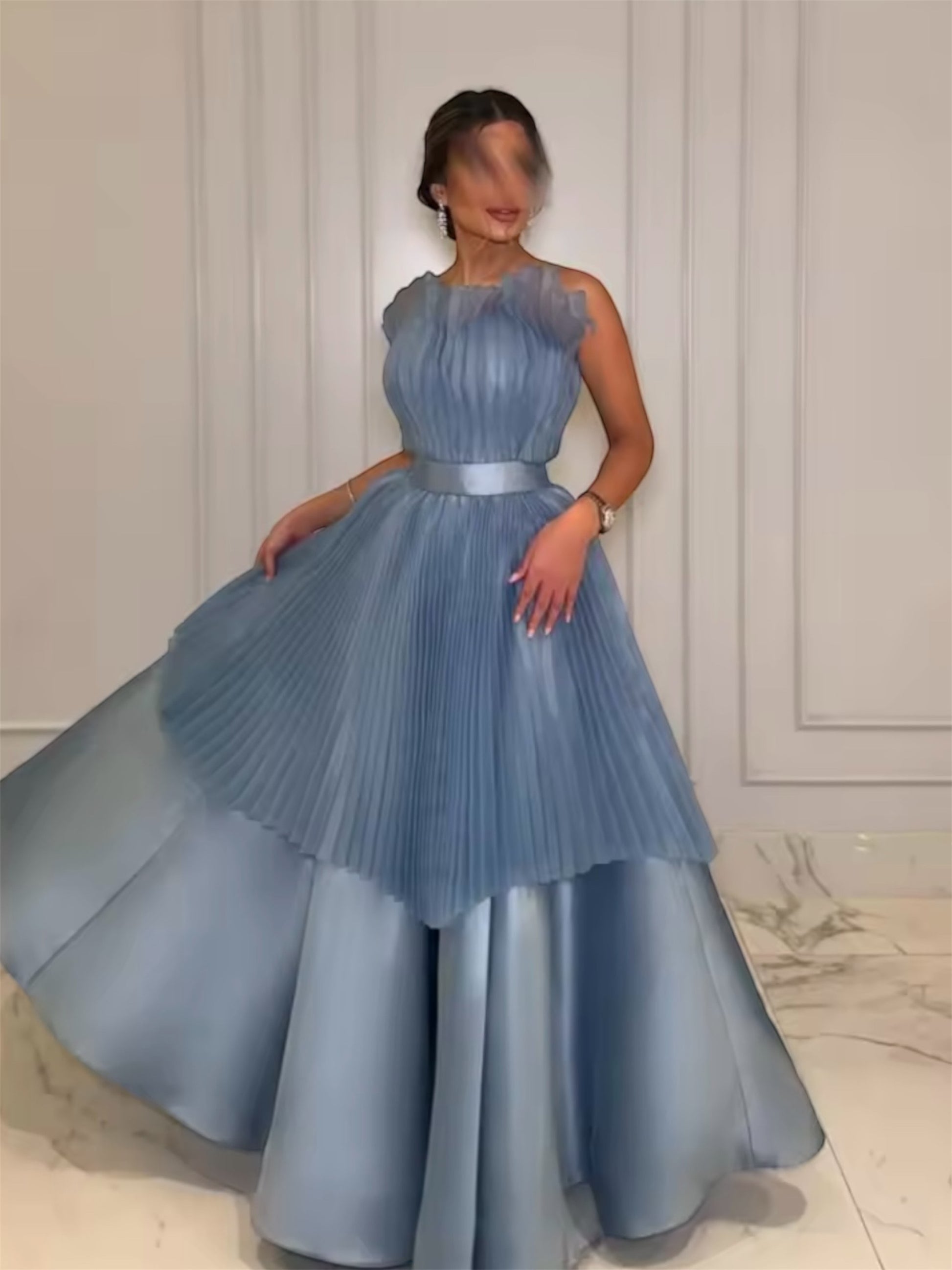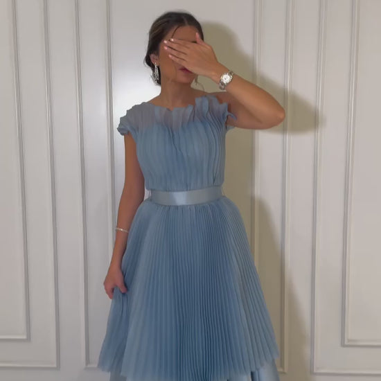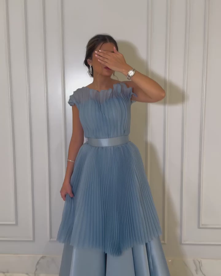 Softly structured with a touch of vintage grace, Tessa is a gown that celebrates lightness and movement. The finely pleated overlay, gently gathered at the shoulders, creates an airy, sculpted silhouette that dances with every step. The layered skirt flows with understated volume, combining texture and fluidity in perfect balance.