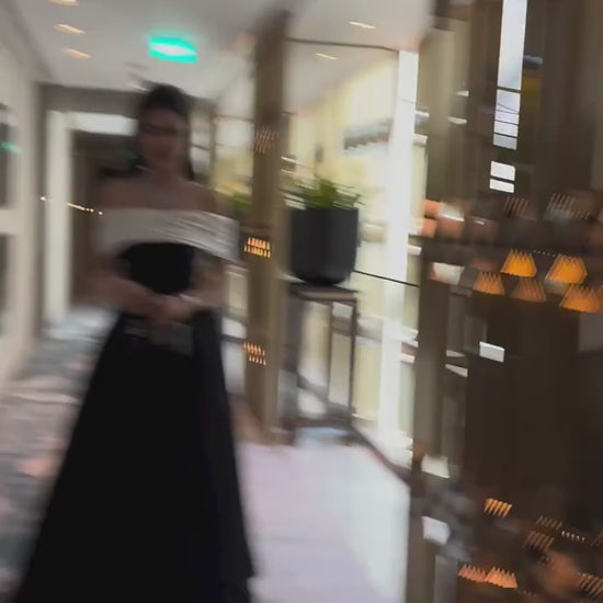 Zareen is pure romance in an off-shoulder silhouette, draped in the softest champagne white. The elegantly folded neckline frames the collarbone beautifully, while the sculpted waist leads into a flowing skirt that moves like liquid silk. Feminine, graceful, and quietly powerful. This is the dress that lingers in the memory long after you've left the room.