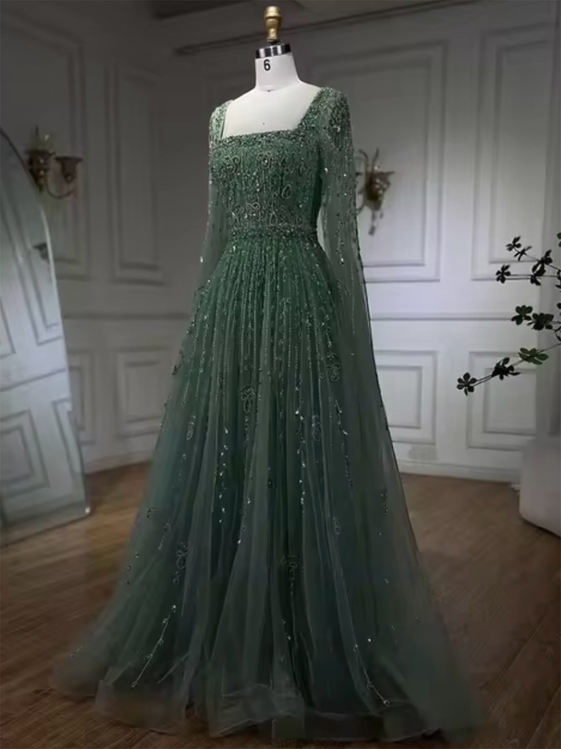 Layla gown is an irresistibly beautiful blend of elegance and romance. With its delicate embroidery, flowing sheer sleeves, and timeless silhouette, it is the perfect choice for ladies who loves a regal, fairy-tale look. A must-have masterpiece that never goes out of style.