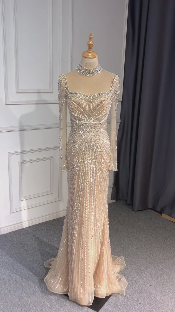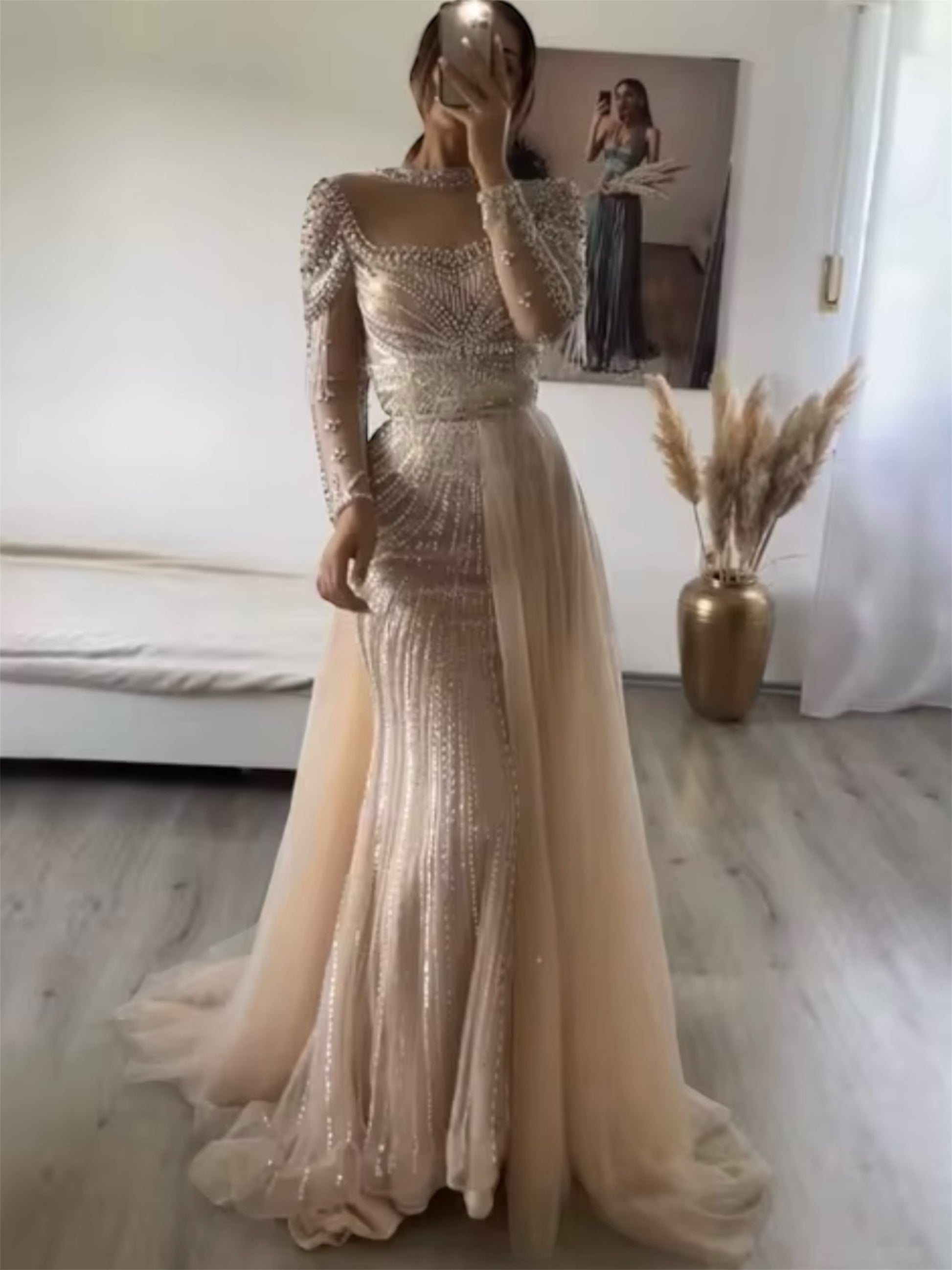 Lena gown is a dazzling gown that radiate pure luxury, where elegance hugs every curve and soft tulle flows like a dream. With hand-embellished sparkle and a graceful silhouette, it's made to captivate from every angle. Unforgettable, irresistible, undeniably yours.