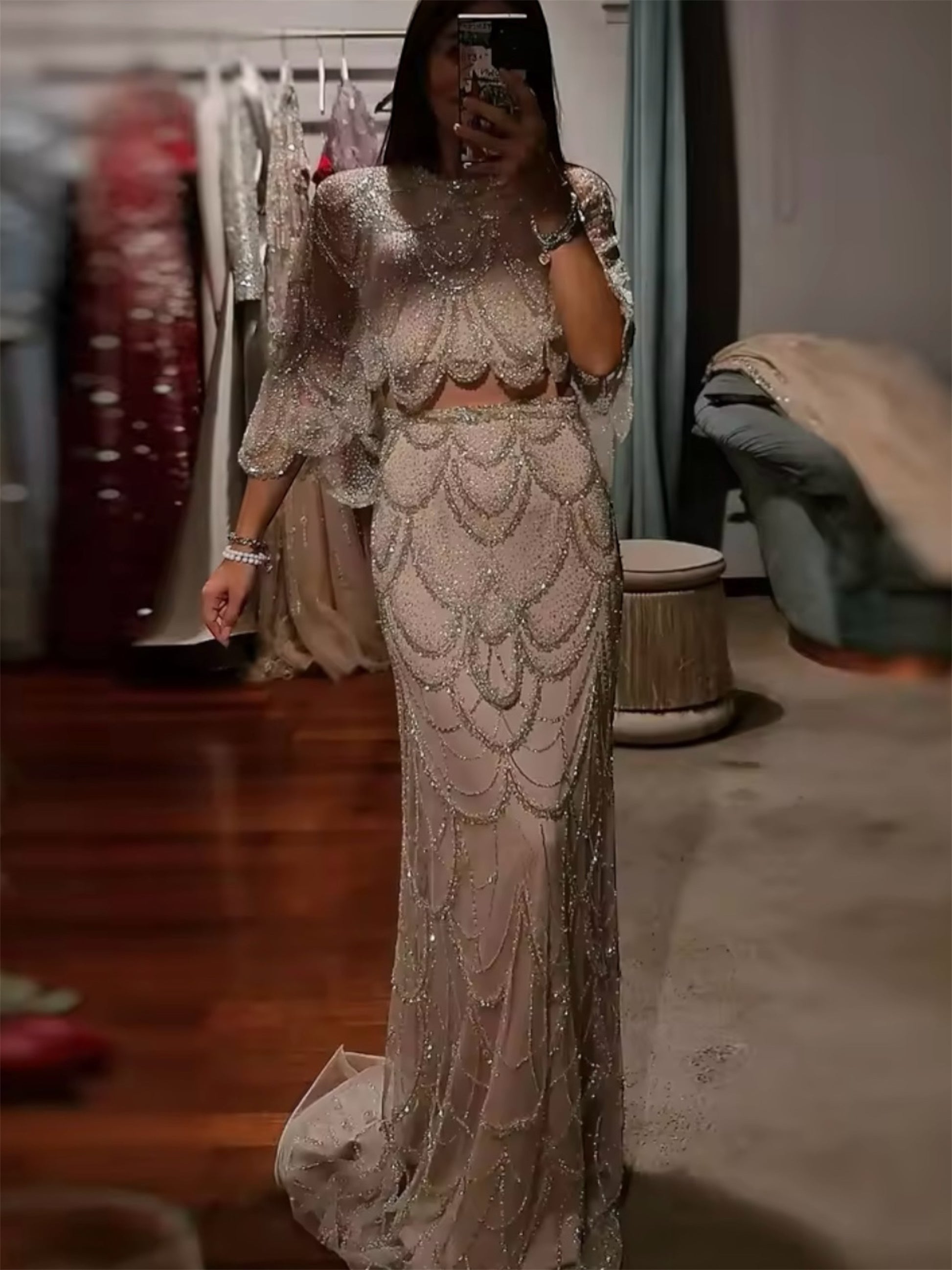 Noor is a 2-piece set defined by its scalloped bead patterns and refined layering. The top and skirt complement each other with perfect harmony, offering both versatility and elegance. Noor is modern yet classic, ideal for women who loves unique sophistication.